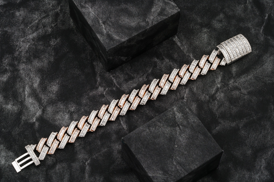 สร้อยข้อมือแบบลิงค์ Classy Diamond ขนาด 12 มม. สองสี โรสโกลด์และเงิน สไตล์ฮิปฮอป หรูหรา แฟชั่น ขนาด 7 นิ้ว ชุบทอง 14K พร้อมใบรับรอง