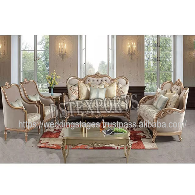 ชุดโซฟาไม้สไตล์ยุโรปใหม่ล่าสุด สำหรับห้องนั่งเล่น ดีไซน์หรูหรา งานแกะสลักโบราณสีทอง สำหรับตกแต่งบ้าน