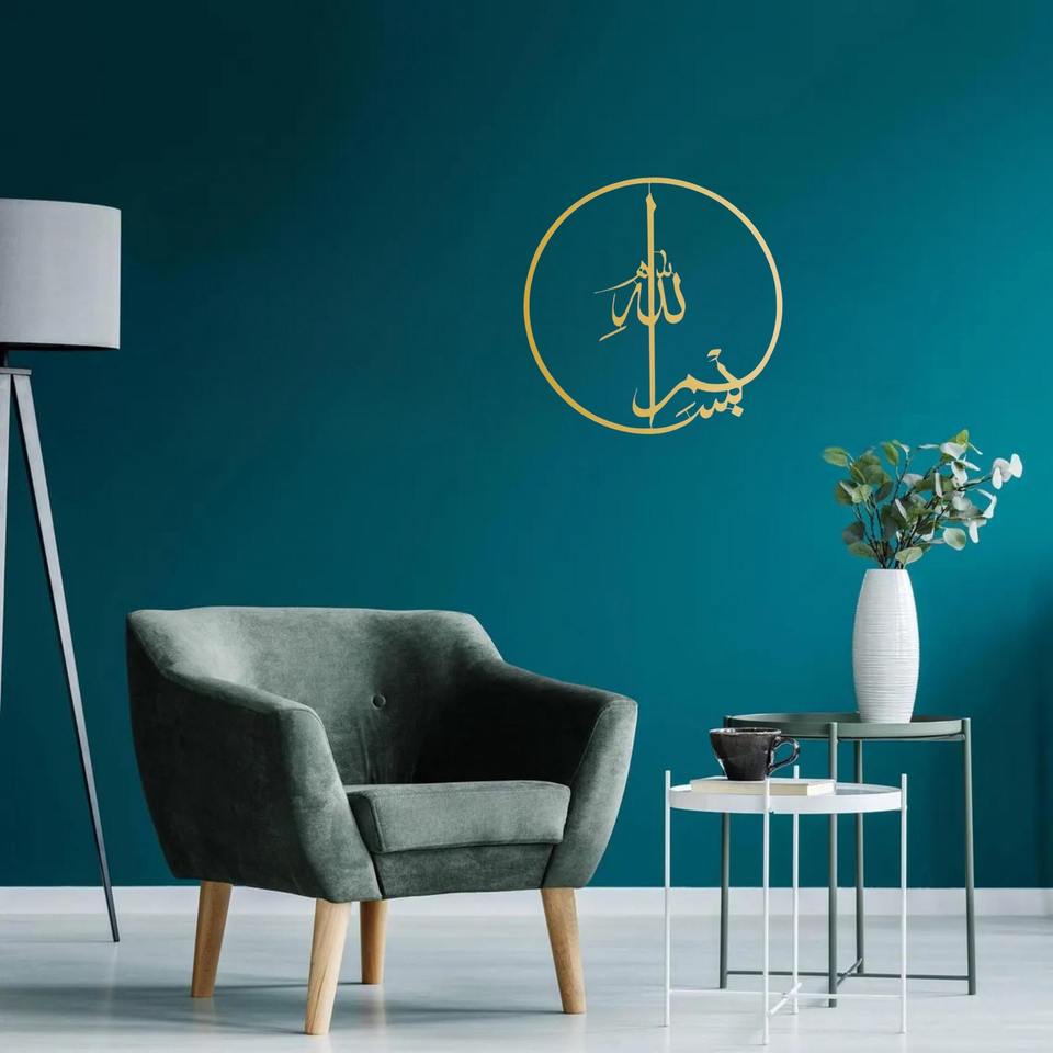 แหวนกลมตกแต่งผนังสีทองสวยคลาสสิกศิลปะบนผนังสไตล์อิสลามสำหรับตกแต่งห้องนอนมัสยิดและบ้านจากอินเดีย