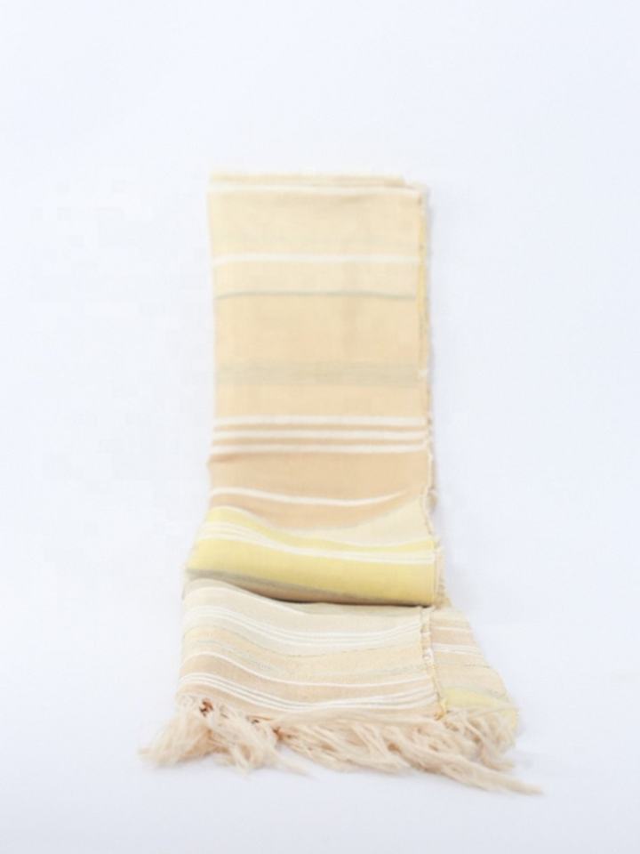 ผ้าคลุมไหล่ไหมพืชโมร็อกโกทำมืออย่างดีสำหรับผู้หญิง ลายเรียบสีเบจ ขอบยาวแต่งชายครุย สำหรับฤดูร้อน งานฝีมือระดับพรีเมียม