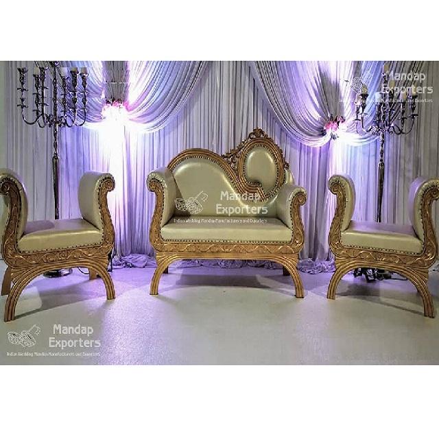 ชุดโซฟาและเก้าอี้เวทีงานแต่งงานสไตล์อินเดียสุดหรูของตกแต่งงานอีเวนต์สำหรับงานแต่งงานบนเวที