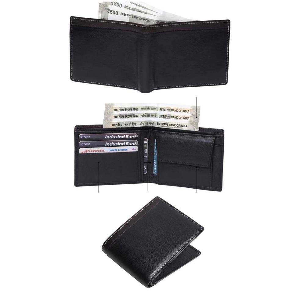 กระเป๋าสตางค์แบบพับสองทบของผู้ชายดูมีระดับสีดำแบบพับได้มีที่ใส่บัตรแบบปลอดภัยทำจากหนังแท้มีซับในทำจากไนลอนใช้งานประจำวัน