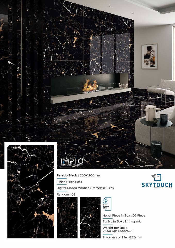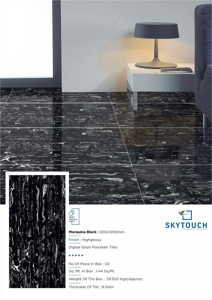 กระเบื้องพอร์ซเลนสีดำขัดเงาแบบคลาสสิกขนาด600*1200มม. สำหรับตกแต่งภายในโรงแรมกระเบื้องปูพื้นและผนัง