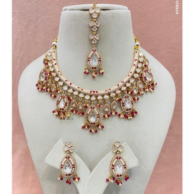 ชุดสร้อยคอชุบทองพรีเมี่ยมที่มีคลาสพร้อมต่างหูและ Tikka สำหรับงานแต่งงานและคอลเลกชันฟังก์ชั่นสำหรับผู้หญิง
