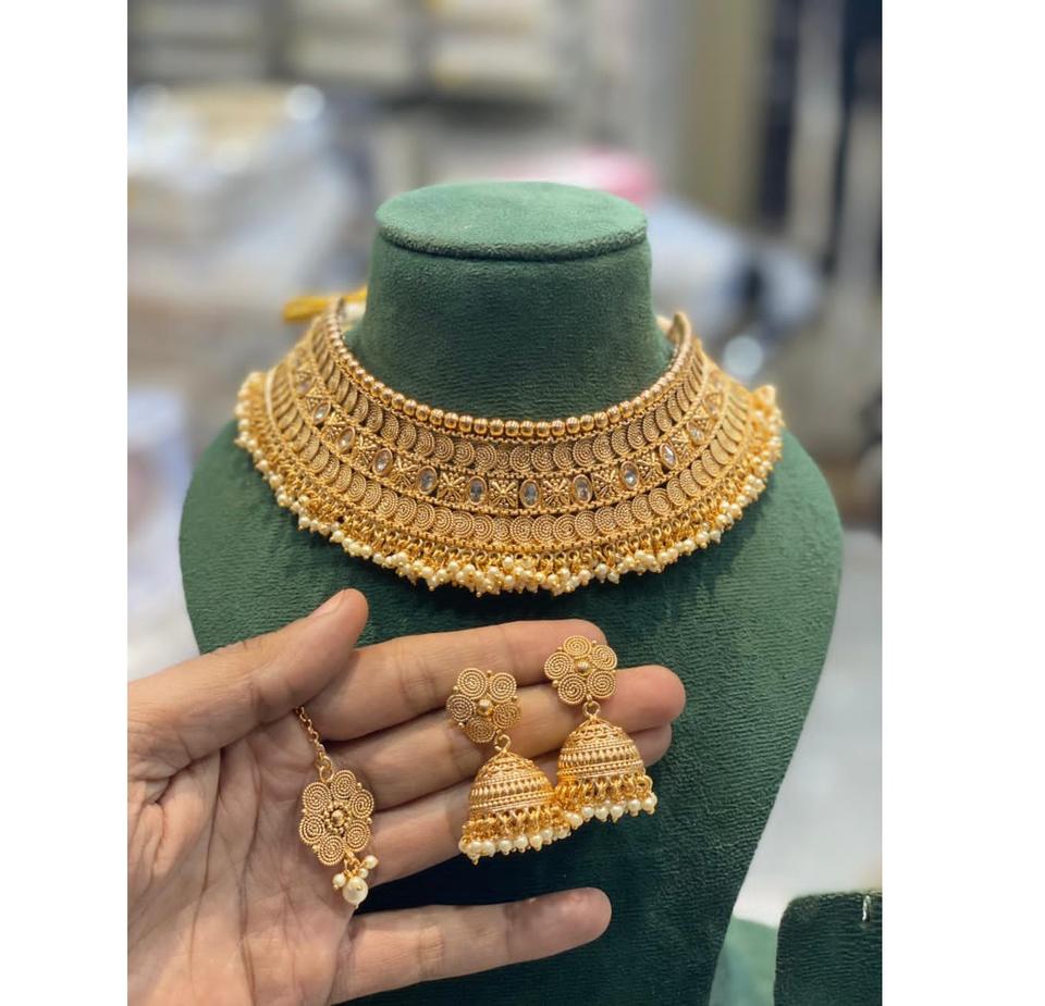 ชุดสร้อยคอทองเหลืองชุบทองคุณภาพพรีเมียม ดีไซน์หรูหรา พร้อมต่างหูและจี้แบบติกก้า เหมาะสำหรับงานแต่งงาน งานปาร์ตี้ และงานเทศกาล สำหรับผู้หญิง