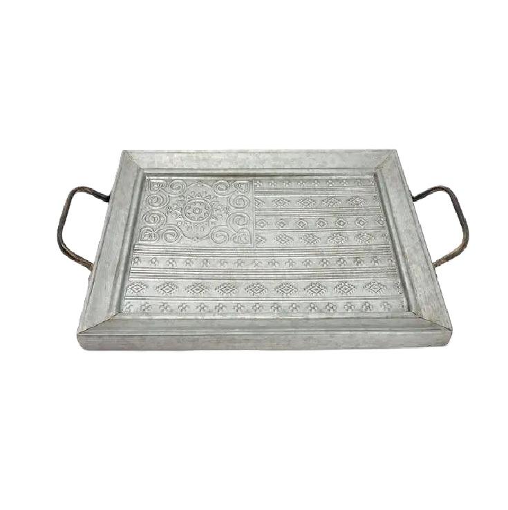 ถาดเสิร์ฟขนมชุบสังกะสีทรงสี่เหลี่ยมผืนผ้าพร้อมที่จับสำหรับวางบนโต๊ะในบ้านและโรงแรมถาดเสิร์ฟเครื่องดื่มแบบแฮนด์เมด