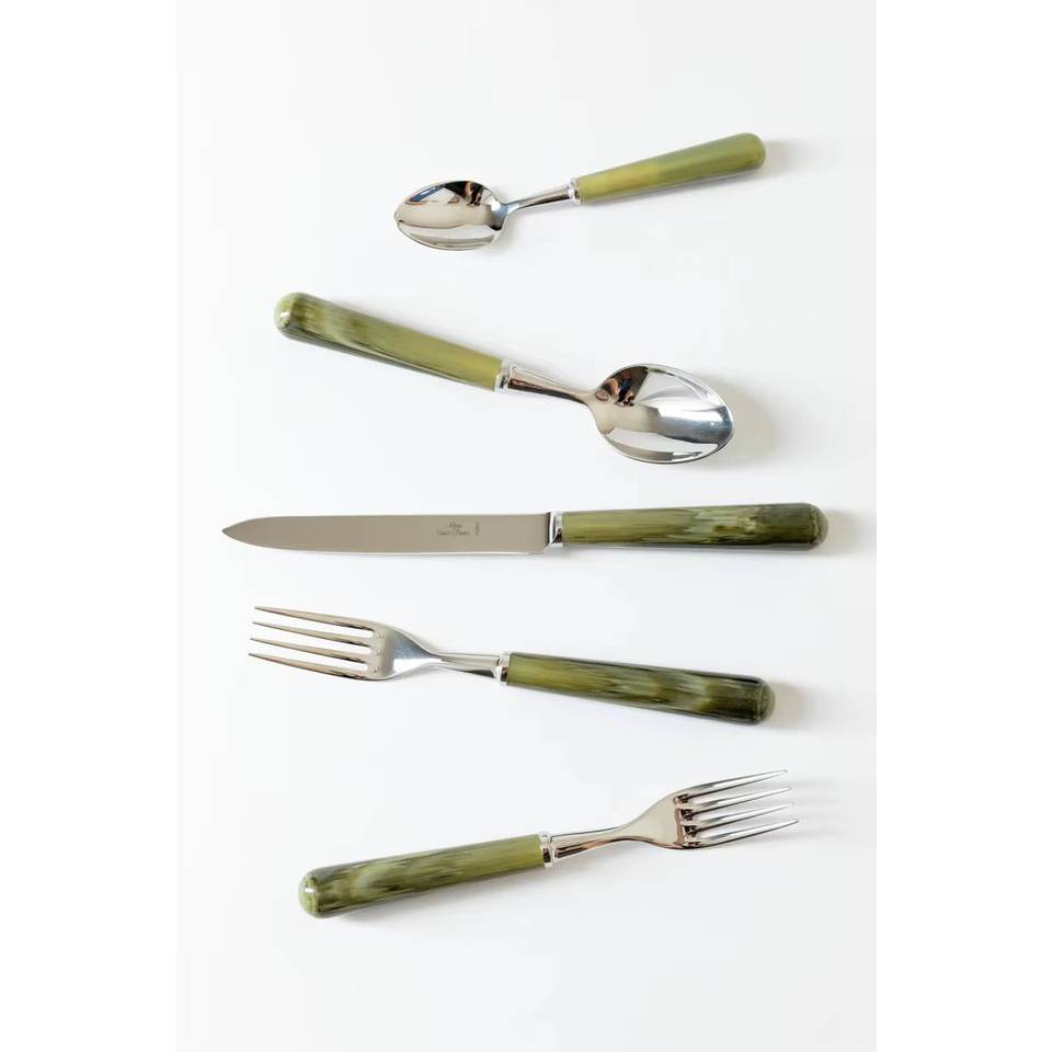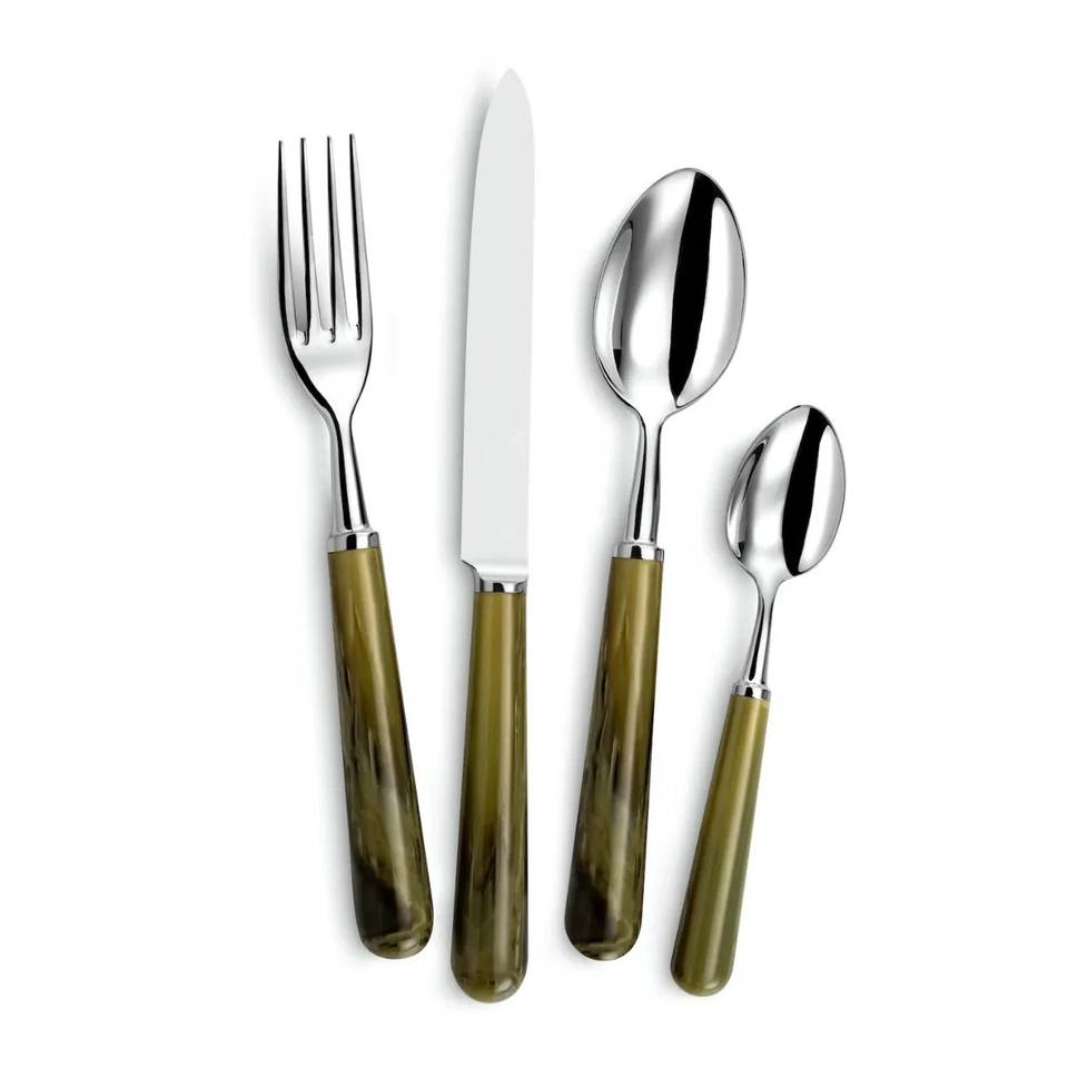 ชุดช้อนส้อมสแตนเลสสตีลเคลือบเงินหนา ดีไซน์หรูหราทันสมัย ด้ามจับทำจากเรซิ่นสีเขียว สำหรับใช้ในบ้าน งานแต่งงาน และโต๊ะอาหาร