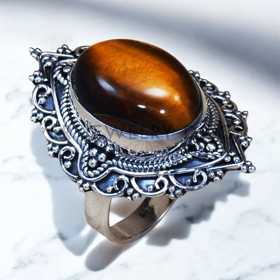 925พลอยตาเสือที่มีคลาสแหวนเงินแท้แบบดั้งเดิมแหวนชั้นดีเครื่องประดับทำด้วยมือราคาพิเศษ