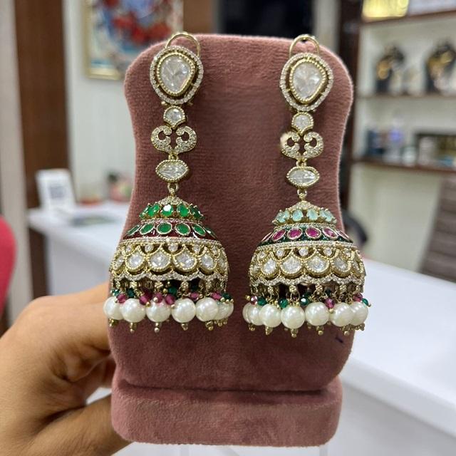 Classy Trendy Moissanite Polki Premium Quality Gold Plated Charm Earrings for Weddings Traditional Wear for Women