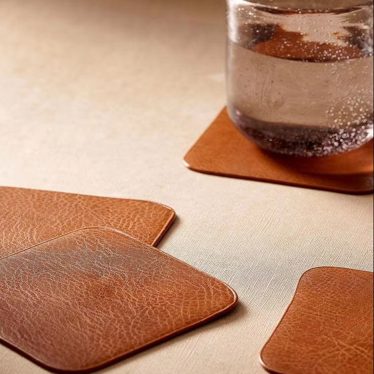 ที่รองแก้วหนังสำหรับเครื่องดื่มที่มีระดับสำหรับโต๊ะกาแฟที่มีความสง่างามแบบวินเทจและการรองรับพื้นผิวที่ยาวนาน
