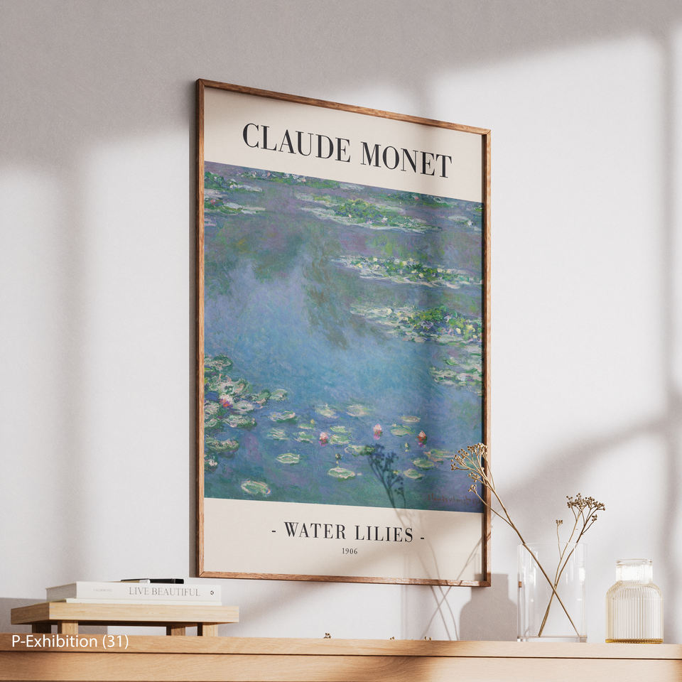 ภาพพิมพ์บนผ้าใบลายบ่อดอกบัวของคล็อด โมเนต์ โปสเตอร์นิทรรศการ งานศิลปะตกแต่งผนังไม้สไตล์โมเดิร์น สงบ สำหรับห้องนั่งเล่น ตกแต่งภายในที่เงียบสงบ