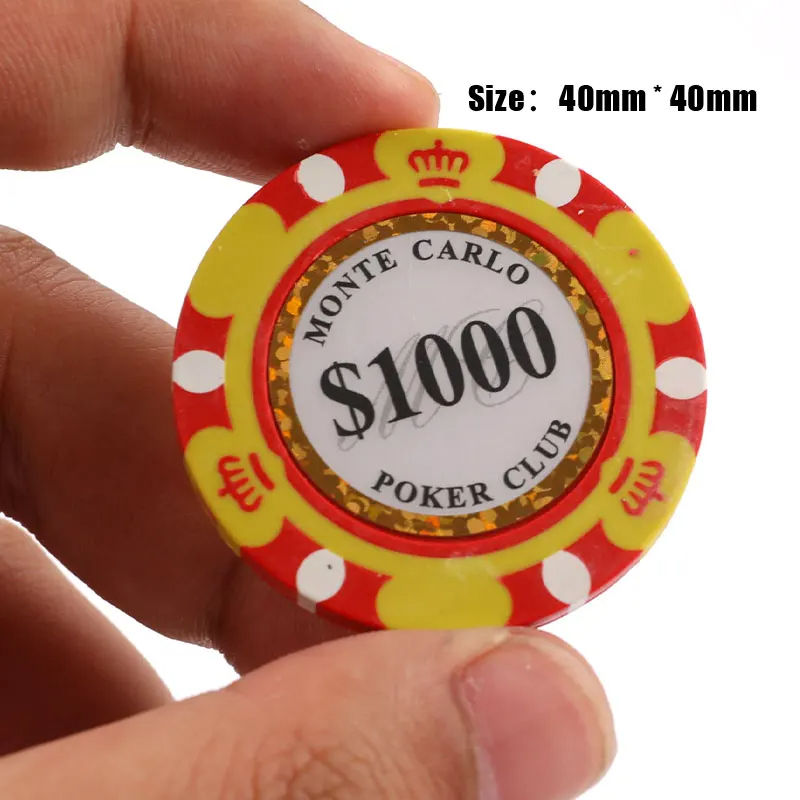 ชุดชิปโป๊กเกอร์ดินเหรียญโป๊กเกอร์คาสิโน40มม. โลหะ14กรัมความบันเทิงเหรียญคาสิโนมอนเตคาร์โลชิปโป๊กเกอร์อุปกรณ์เสริมคลับ