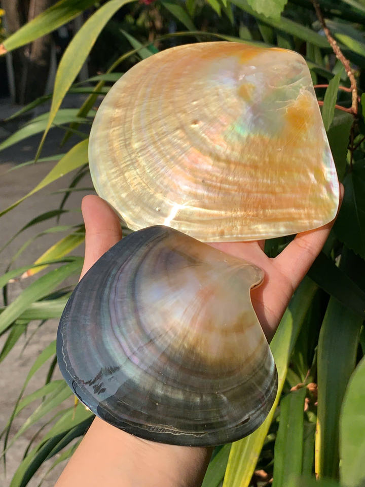 จานเปลือกหอยมุกหลากสี ทำความสะอาดแล้ว ขัดเงาอย่างเป็นธรรมชาติ ของตกแต่งจากเปลือกหอยทะเล ผลิตจากโรงงานในเวียดนาม ขายส่ง