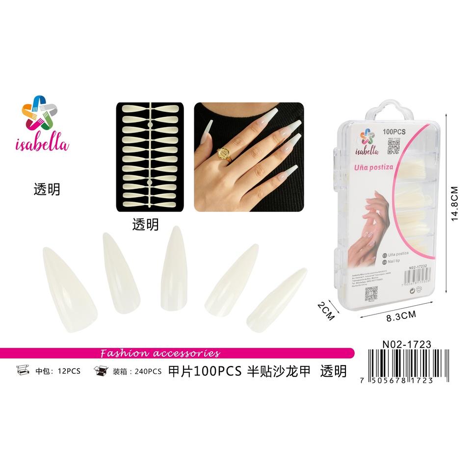 Clear 100-Piece Women's Fashion Acrylic False Nails Trendy N02-17238 Half-Cover Salon Stylish Elegant Accessory