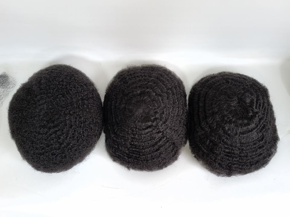 Clear 1B Natural Black 4MM 6MM 8MM Afro Wavy Curly Natural Human Hair Thin PU Skin Hair Piece Male Toupee