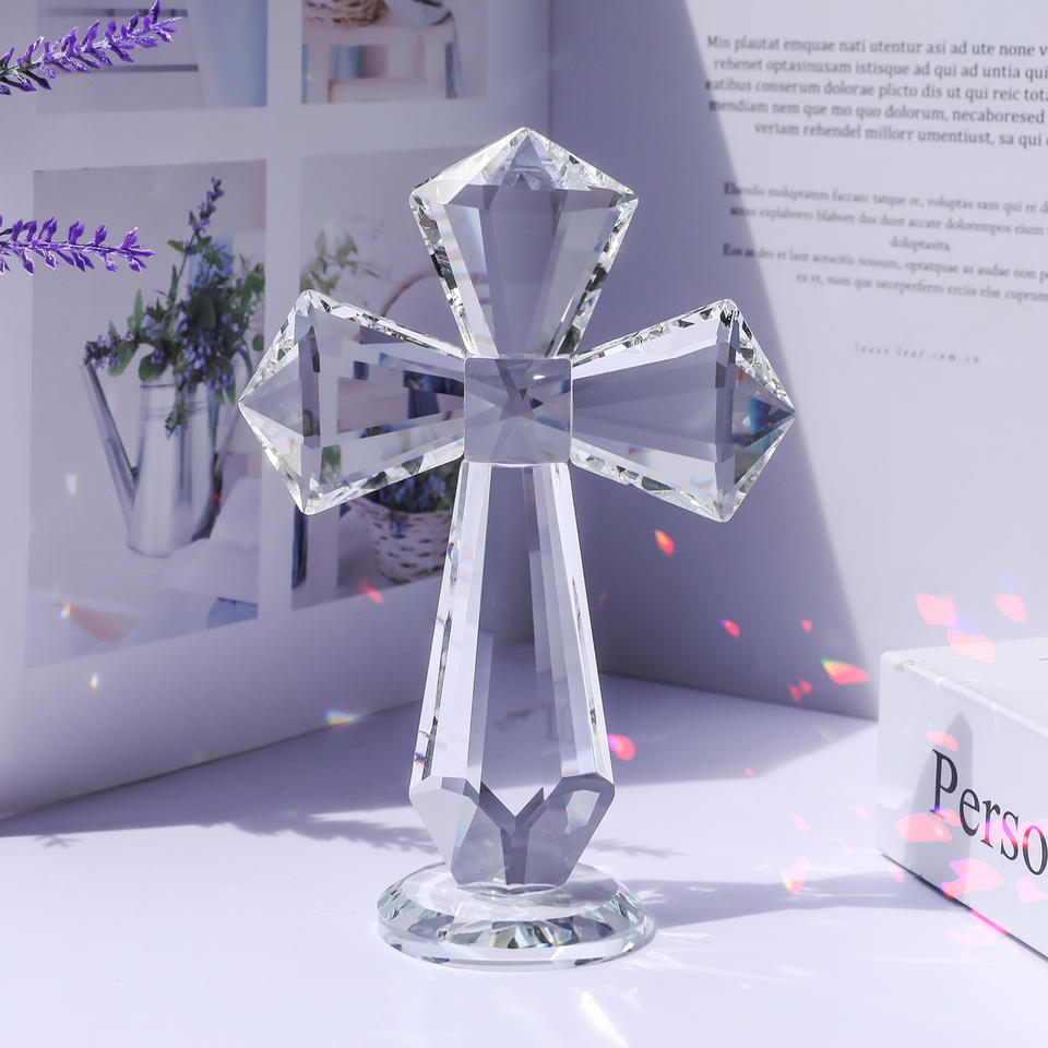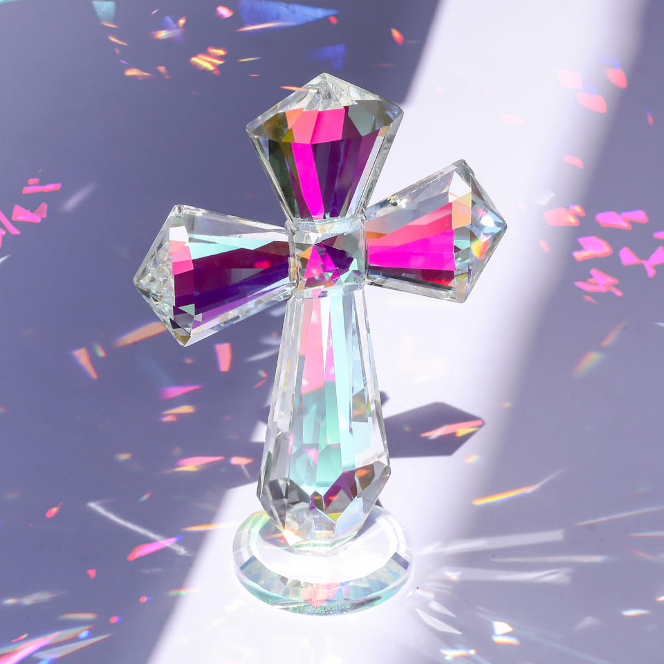 คริสตัลรูปกางเขนสีใส AB งานแฮนด์เมด ของตกแต่งบ้าน ของสะสม