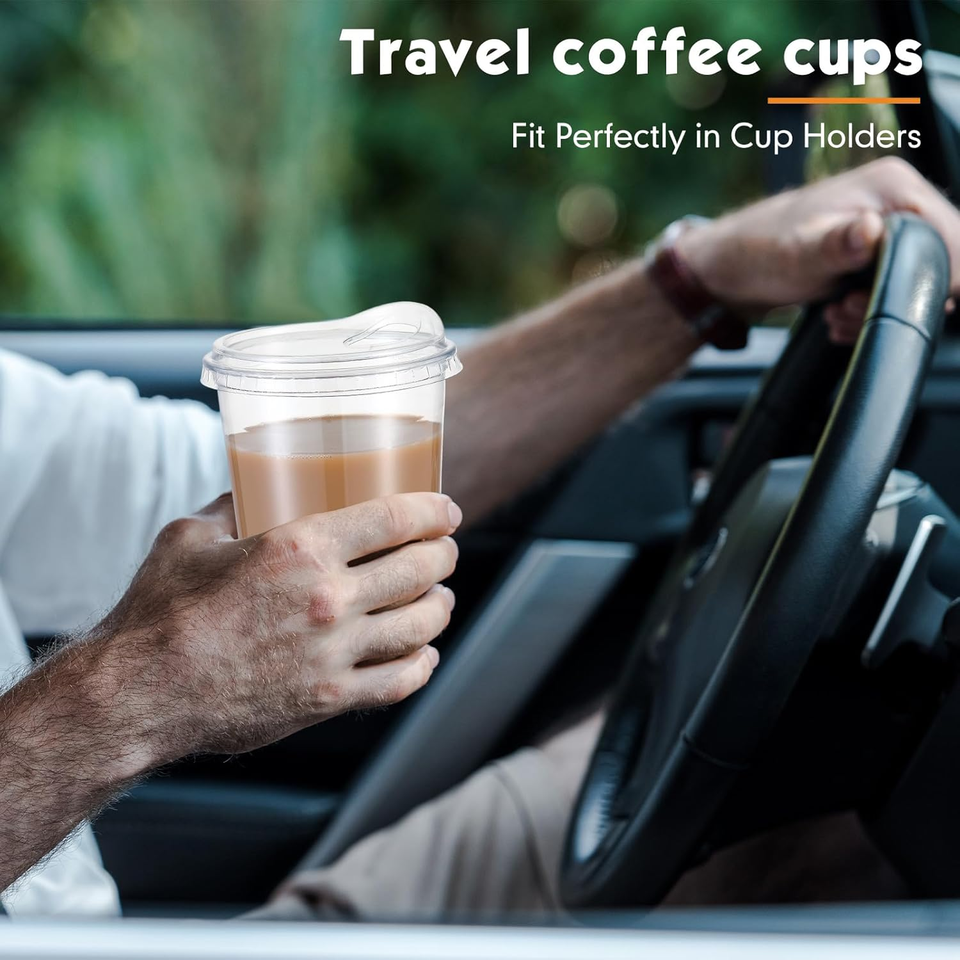 แก้วพลาสติกใสย่อยสลายได้พร้อมฝาปิด แข็งแรง ปลอดภัยสำหรับอาหาร ใช้กับตู้แช่แข็งได้ เหมาะสำหรับกาแฟเย็น สมูทตี้ และเครื่องดื่มเย็น