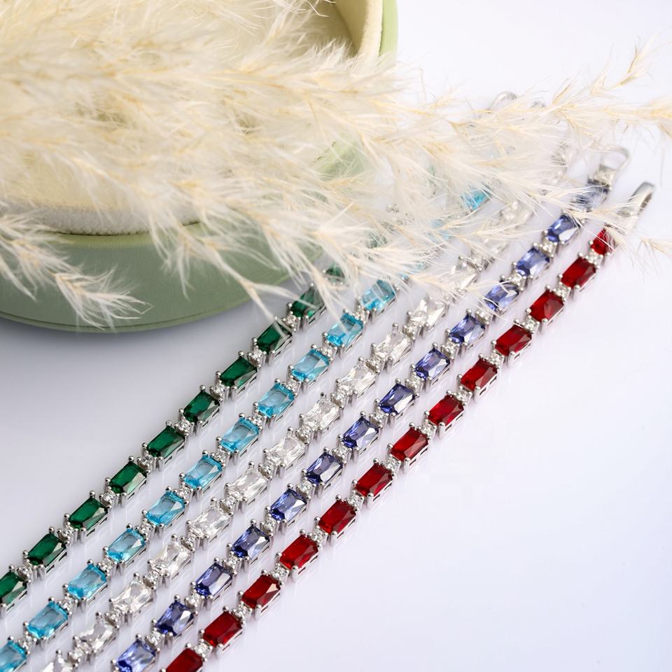 กำไลข้อมือเทนนิสดีไซน์แบบบาแกตต์หินคิวสีใสทำด้วยมือเงิน925ตุรกีเครื่องประดับชั้นดีสำหรับผู้หญิง