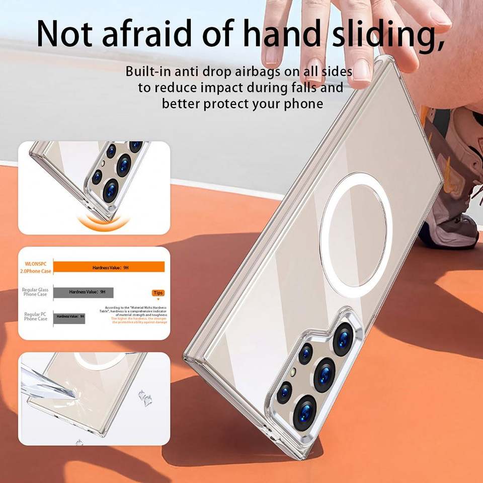 เคสใสสำหรับ Samsung Galaxy S24 Plus Ultra S24+ พร้อมตัวป้องกันกล้อง วงแหวนแม่เหล็ก โทรศัพท์แบบใส แข็งแรง ทนทาน รุ่น Wls83 Wlons
