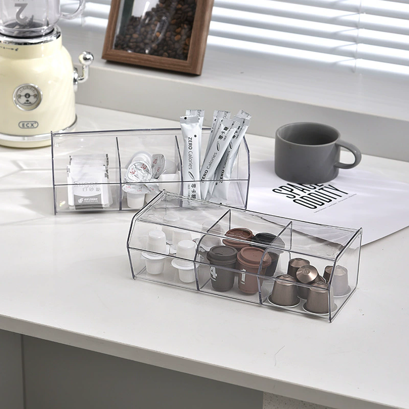 ที่จัดเก็บกาแฟแคปซูลแบบใส3ช่องอุปกรณ์จัดระเบียบสำหรับบาร์และกาแฟเข้ากันได้กับฝักกาแฟ