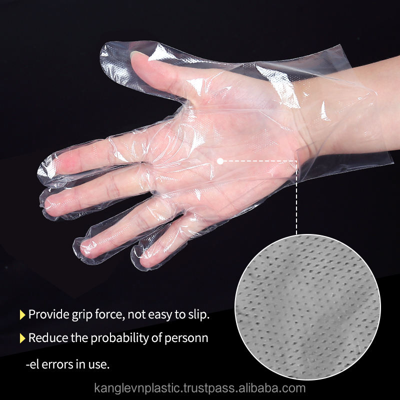ถุงมือไนลอนกันน้ำคุณภาพสูงสำหรับใช้ในครัวเรือน ผลิตจากโพลีเอทิลีนความหนาแน่นต่ำ (LDPE) ของเวียดนาม สีใส เรียบเนียน ใหม่ เหมาะสำหรับการดูแลสัตว์เลี้ยง