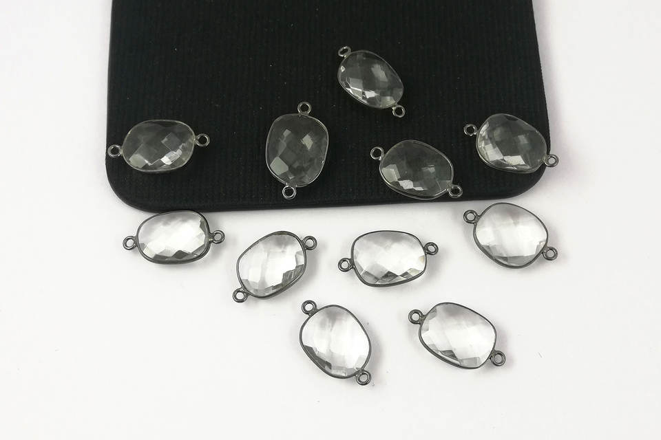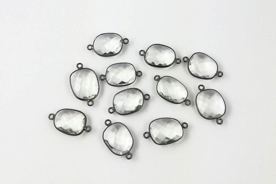 ตัวเชื่อมต่อชาร์มทรงอิสระขนาด 13-16 มม. ประดับด้วยคริสตัลควอตซ์ใสทรงแฟนซี ชุบโรเดียมสีดำบนเงิน
