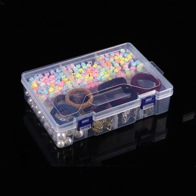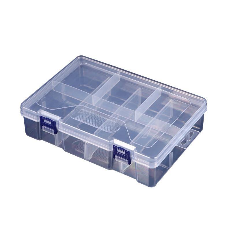 กล่องเก็บของแบบใสสองชั้น 8 ช่องพร้อมตัวล็อคสำหรับเครื่องประดับเครื่องมือจัดระเบียบชิ้นส่วนต่างๆ ที่จัดระเบียบโต๊ะทำงานพลาสติก
