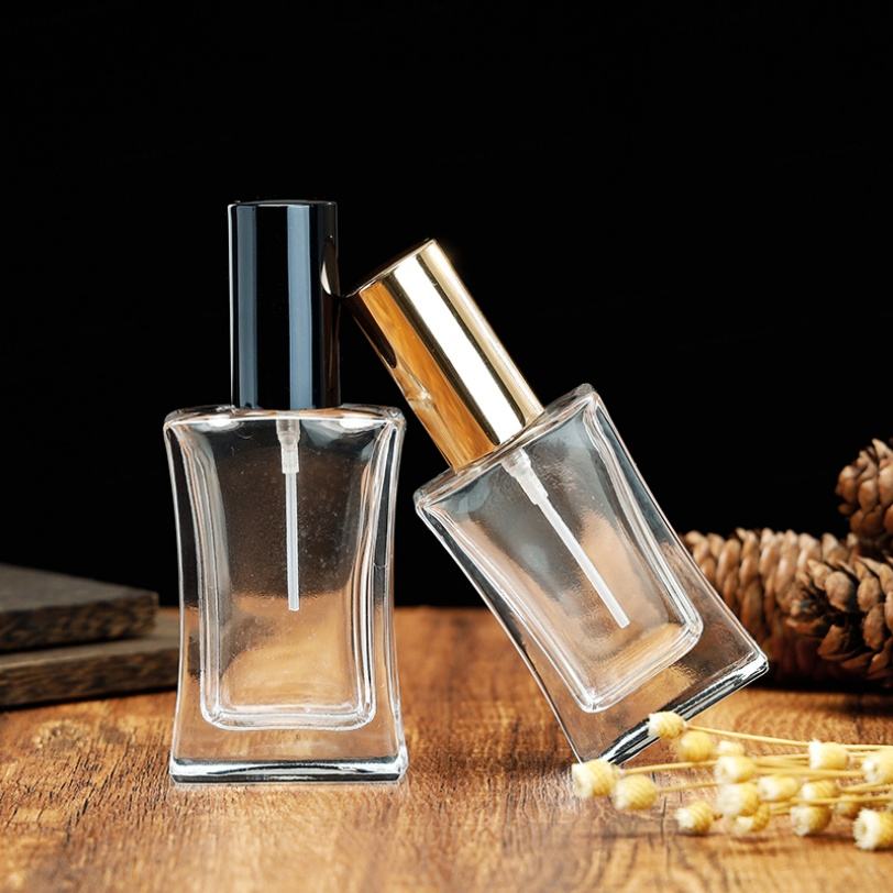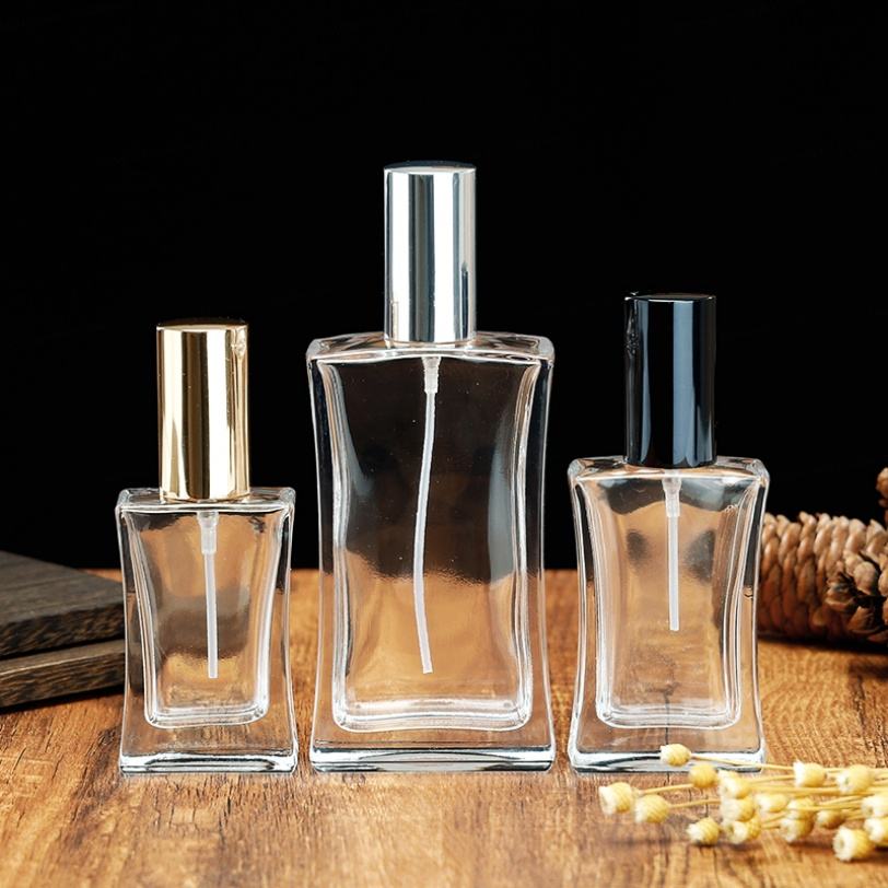 ขวดน้ำหอมเปล่าแบบแบนทรงสี่เหลี่ยม บรรจุภัณฑ์เปล่า ขวดสเปรย์แบบขวดเกลียว 50 มล. พร้อมส่ง