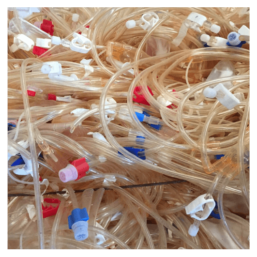 เศษวัสดุท่อพีวีซีทางการแพทย์แบบใสและยืดหยุ่นที่ผ่านการผลิตแล้วและถูกตัดสินใจทิ้ง
