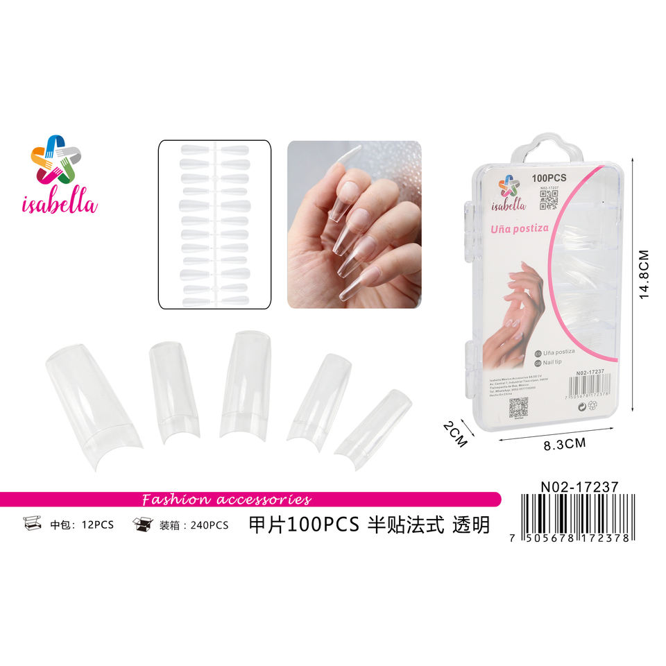 Clear French Half-Cover 100-Piece Women's Fashionable Acrylic False Nails Stylish Elegant Manicure Accessory N02-17237