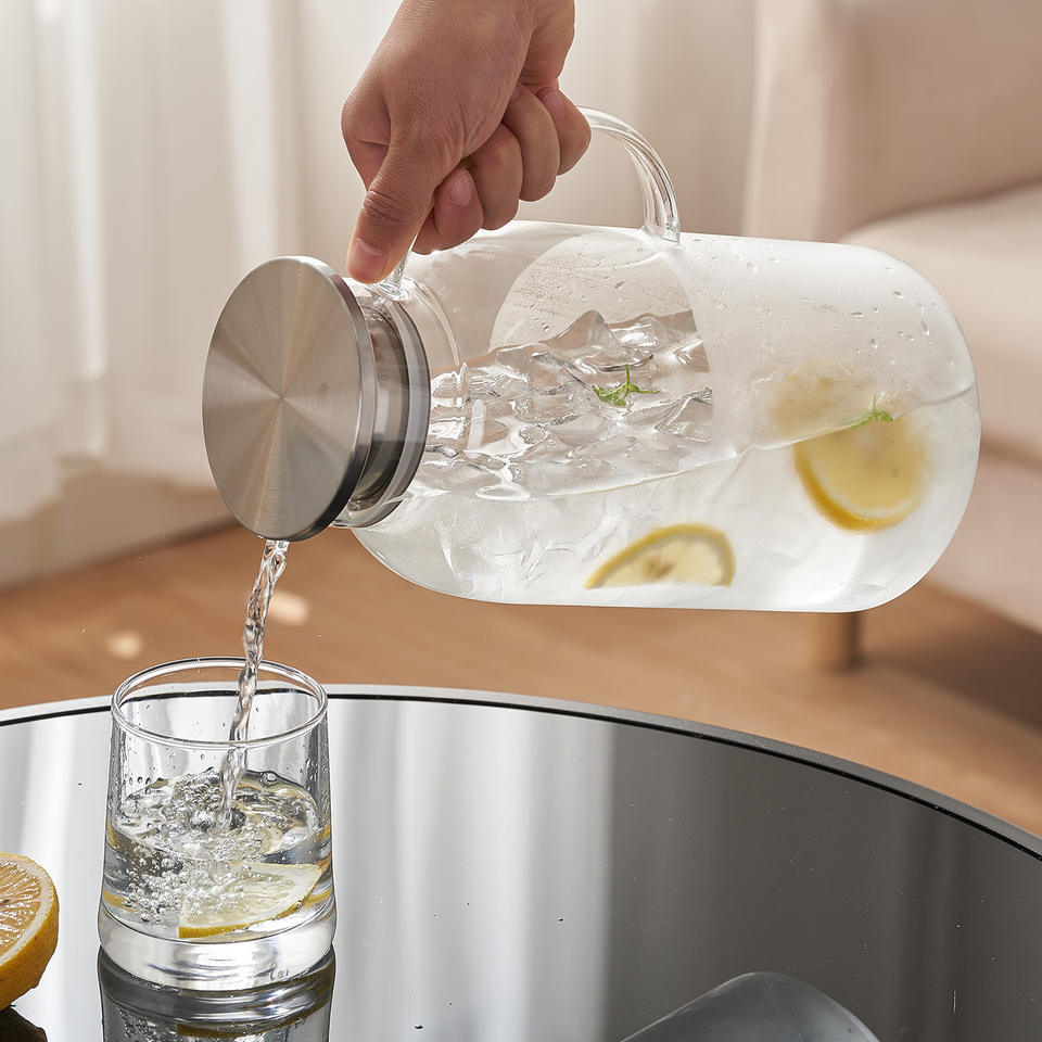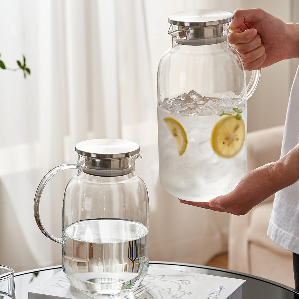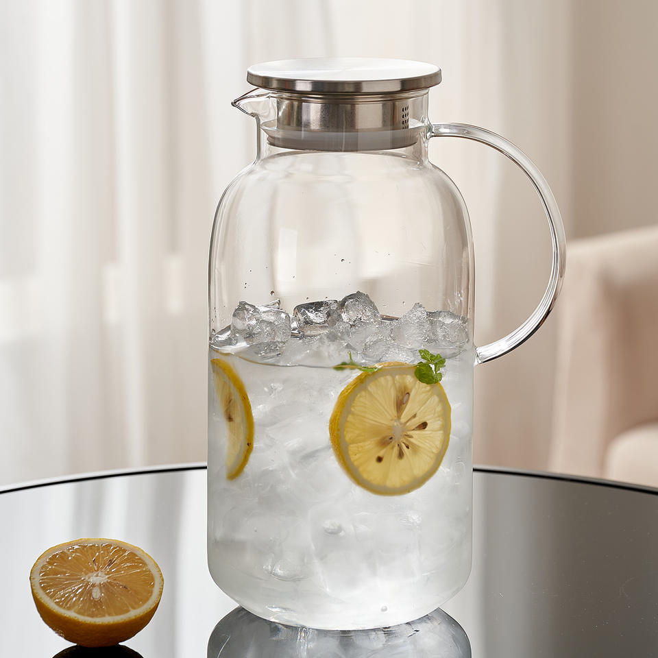เหยือกน้ำแก้วใสขนาดใหญ่พร้อมฝาปิด สำหรับงานปาร์ตี้และใช้ในชีวิตประจำวัน