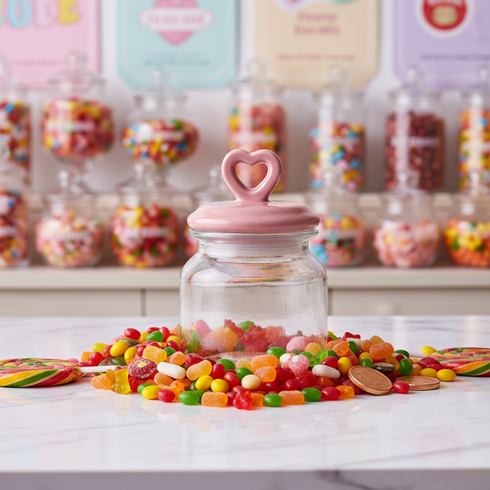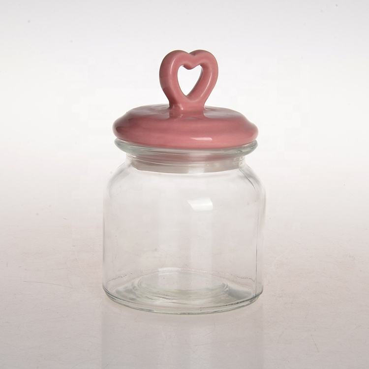 โถแก้วใสสำหรับเก็บอาหาร ฝาปิดเซรามิกรูปหัวใจ ปิดสนิท ปลอดภัยสำหรับอาหาร เหมาะสำหรับใส่ขนม คุกกี้ ชา ใช้ในครัวหรือห้องเก็บของ