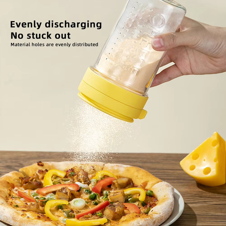 ขวดเชคเกอร์ชีสขูดแบบใสพร้อมฝาปิดสำหรับปรุงรสงายี่หร่าภาชนะในครัวสำหรับเครื่องมือบาร์บีคิว