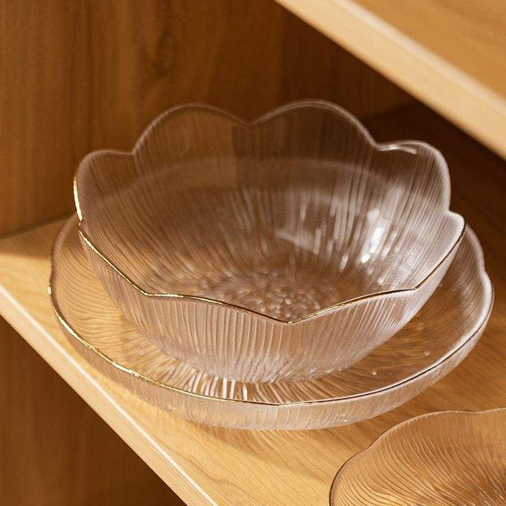 ชามแก้วใสลายนูนชามแก้วสำหรับเสิร์ฟพร้อมดีไซน์เนอร์