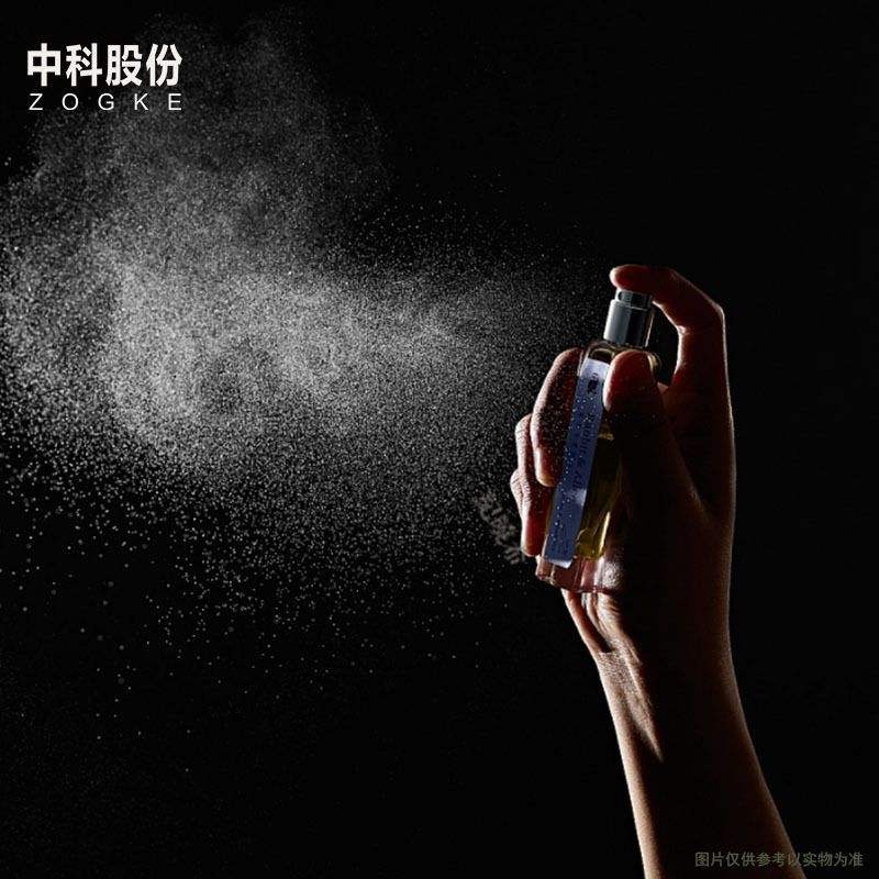 Clear perfume spray bottle with black cap