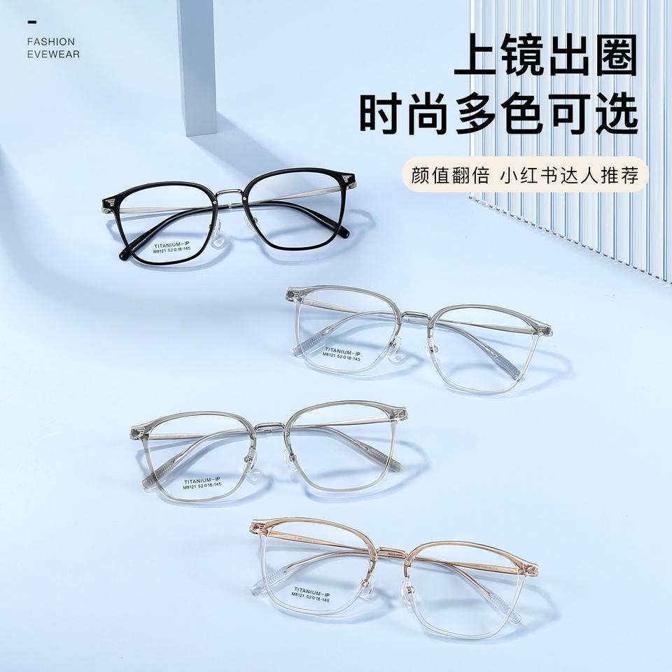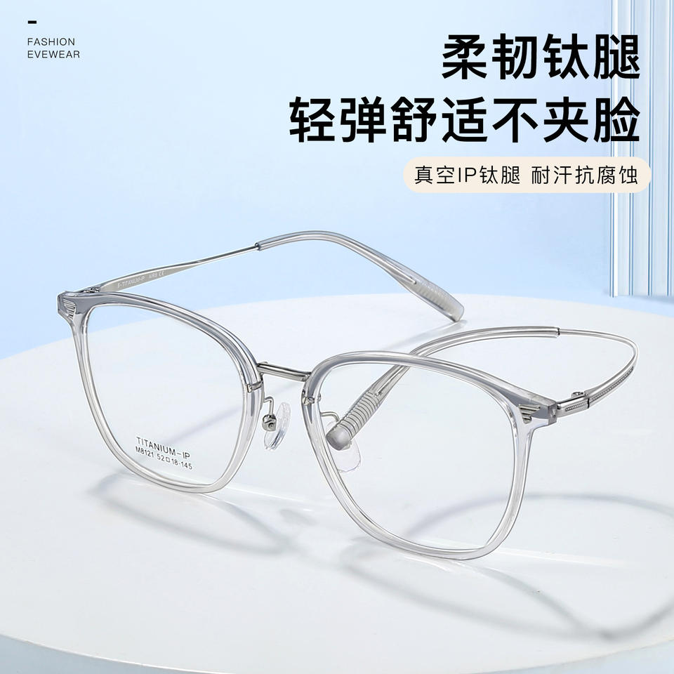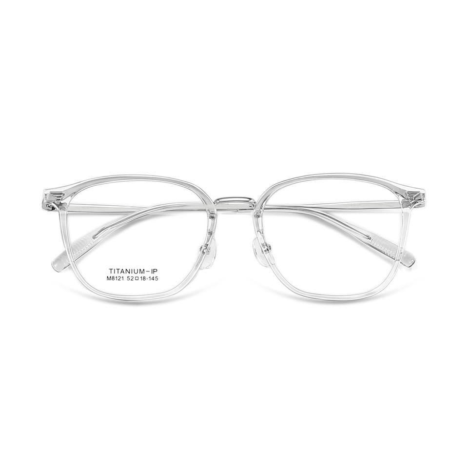 กรอบแว่นตาสี่เหลี่ยมสีเทาใส รุ่น M8121 52-18-145 ไทเทเนียม IP สำหรับทุกเพศ แบบเต็มกรอบ เลนส์เรซิ่นใส ยี่ห้อ Danyang