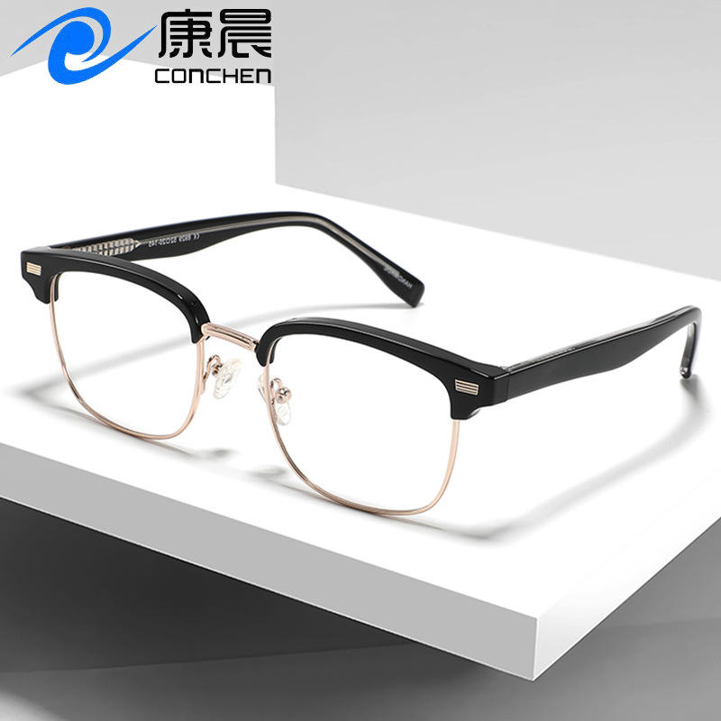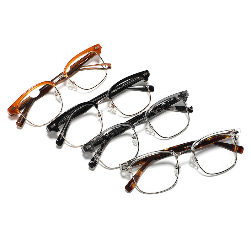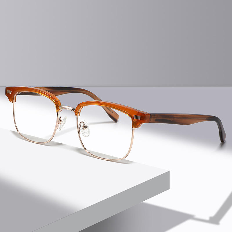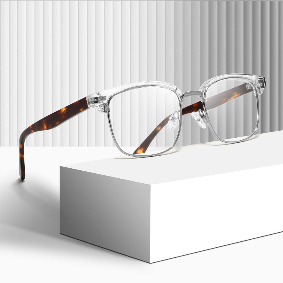 แว่นตาทรงสี่เหลี่ยมครึ่งกรอบใส ขาแว่นลายกระดองเต่า เลนส์แบบ Plano สำหรับทุกเพศ ดีไซน์โปร่งใสเพื่อลุคธรรมชาติ
