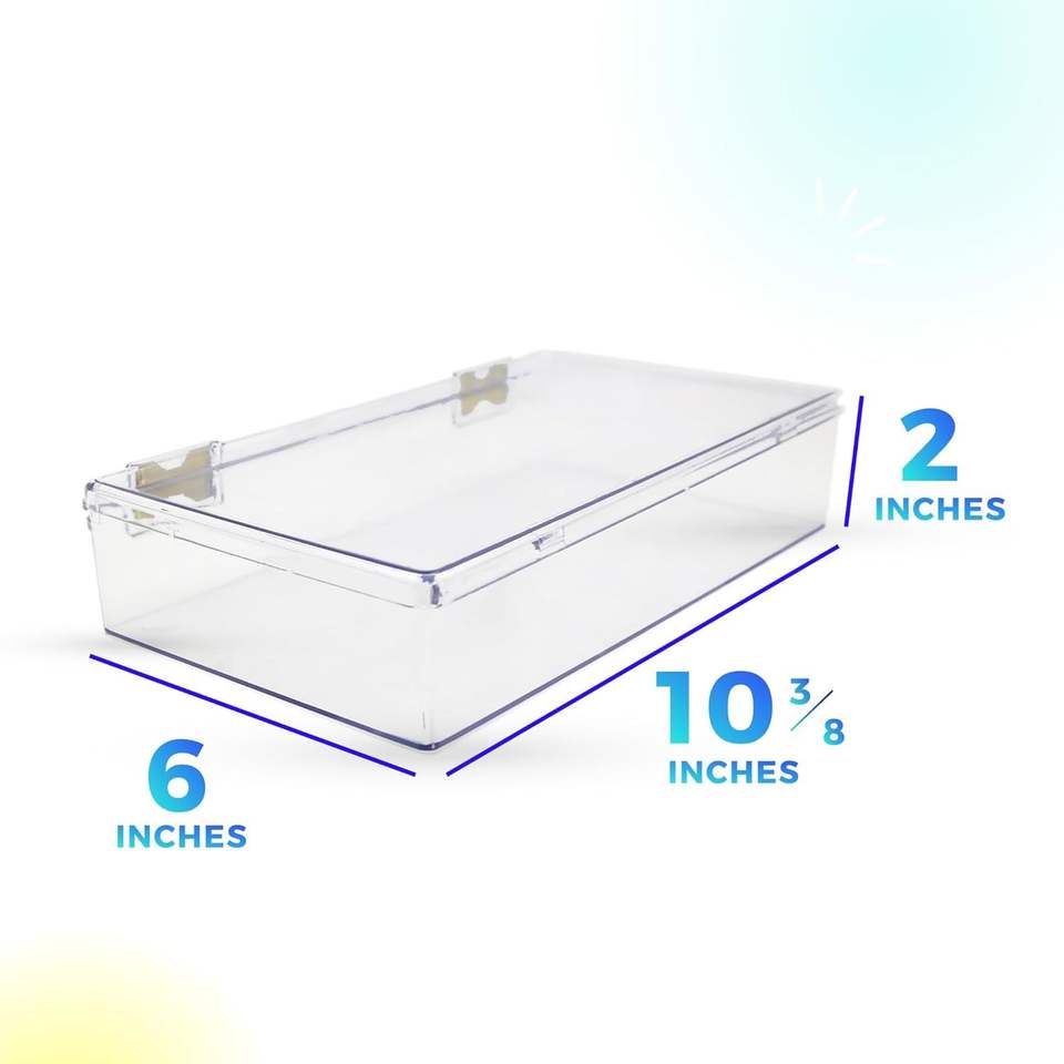 กล่องโชว์พลาสติกใสแข็งแรงและกล่องเก็บของที่ระลึก ขนาด 10 3/8 นิ้ว ยาว x 6 นิ้ว กว้าง x 2 นิ้ว สูง พร้อมฝาปิดแบบมีบานพับ