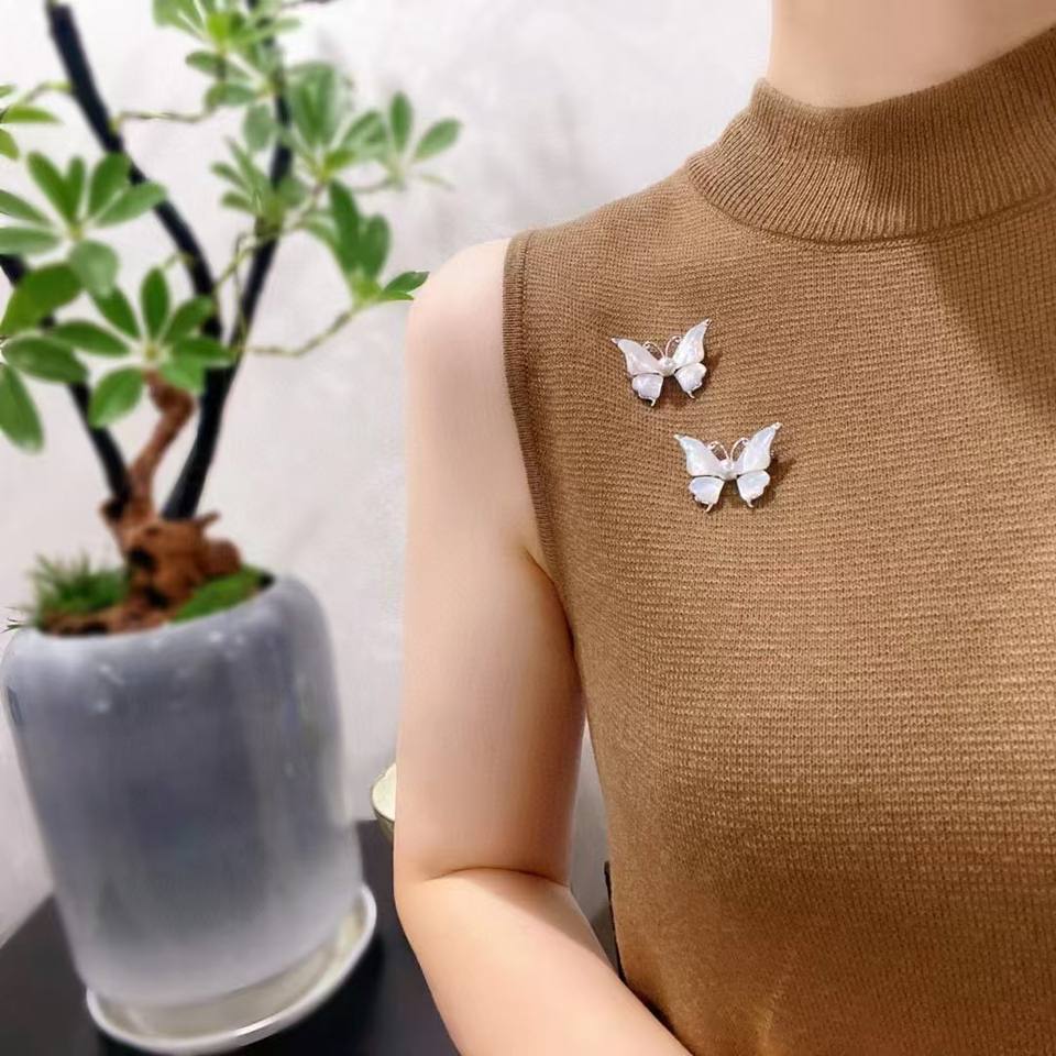 เข็มกลัดรูปผีเสื้อประดับมุกเทียมคุณภาพสูง สไตล์เกาหลี เครื่องประดับมุกติดหน้าอก