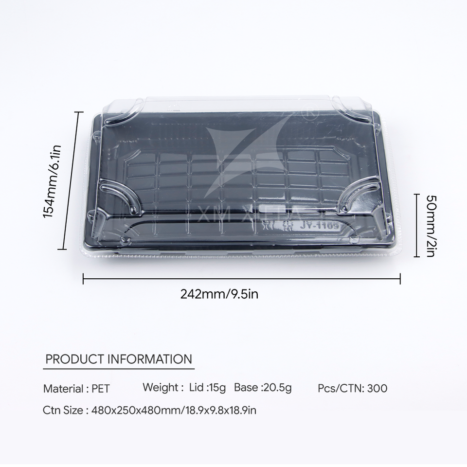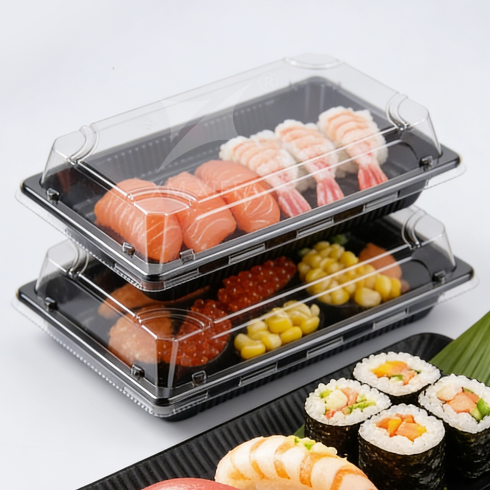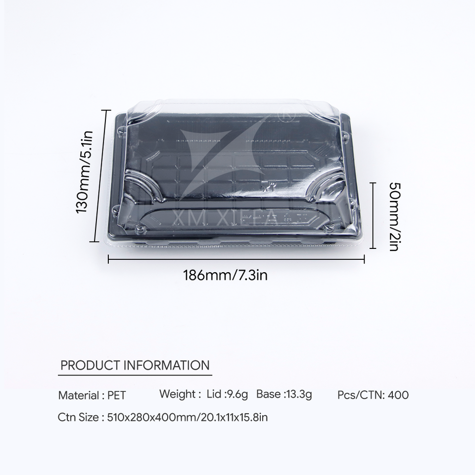 กล่องใส่อาหารซูชิแบบใช้แล้วทิ้ง ฝาใส PET ปลอดภัยสำหรับอาหาร บรรจุภัณฑ์สำหรับซื้อกลับบ้าน พร้อมโลโก้สั่งทำได้ ขายส่ง