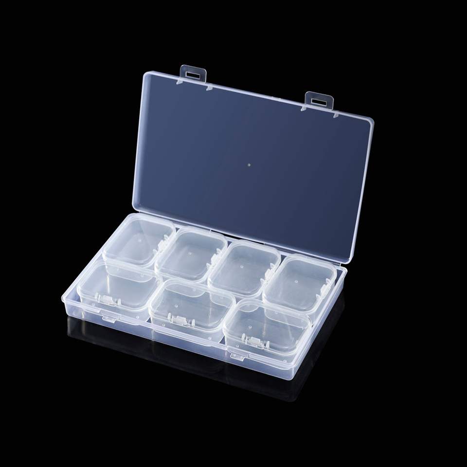 กล่องใส่เครื่องประดับพลาสติกใสพร้อมช่องเก็บของ 7 ช่องสำหรับอุปกรณ์เสริมชิ้นส่วนขนาดเล็กใช้สำหรับเดินทาง