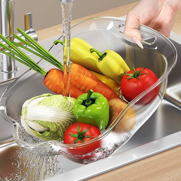 กระชอนครัวพลาสติกใสพร้อมที่จับสำหรับล้างผักและระบายน้ำ ชามกรองอเนกประสงค์ 31817 W