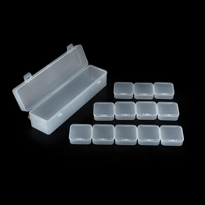 กล่องเก็บของพลาสติกใสชุด 12 ช่องออแกไนเซอร์ตั้งโต๊ะกล่องเครื่องประดับภาชนะสี่เหลี่ยมเล็กฝาปิดโปร่งใส
