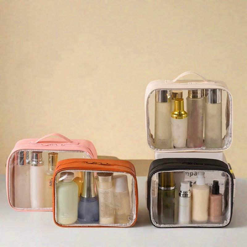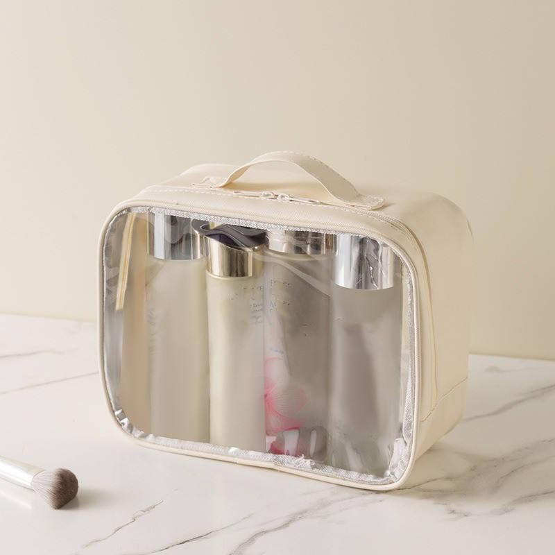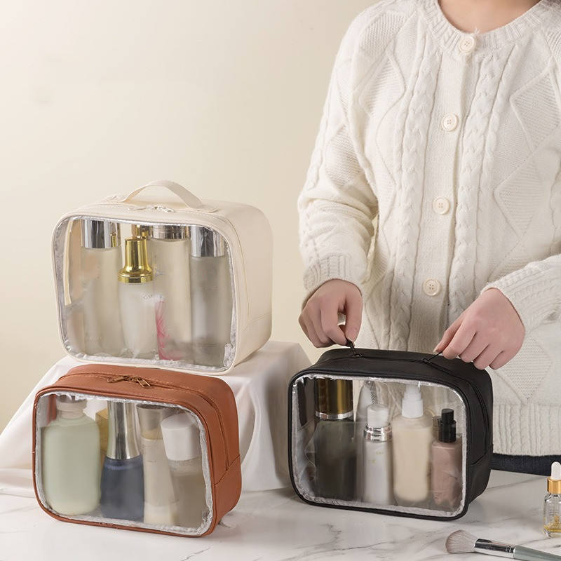 กระเป๋าเครื่องสำอางเดินทางกันน้ำพกพาได้ใสมีซิป