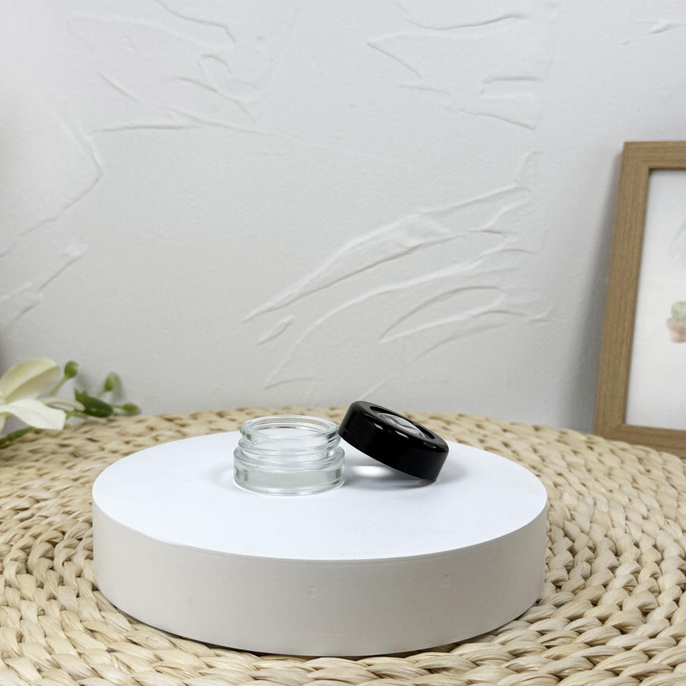 เหยือกแก้วกลมใสพร้อมฝาปิดกันเด็กสีดำสีขาวสีดำ
