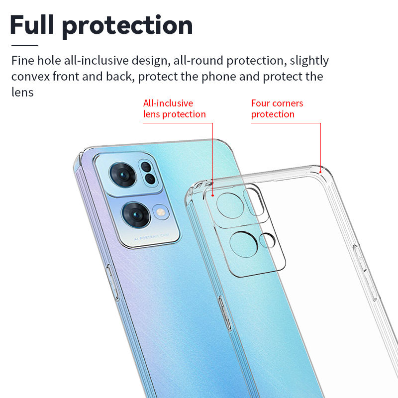 เคสโทรศัพท์ขอบตรงใสกันกระแทกกันตกสำหรับ Oppo Find X2 Pro Reno 7 6