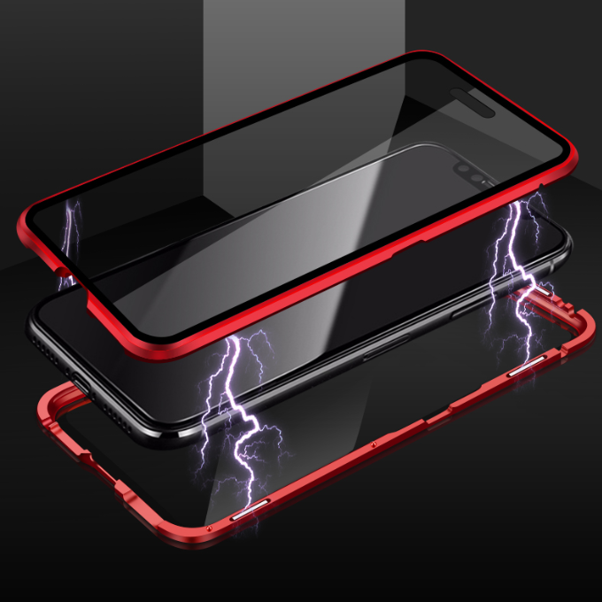 กระจกใสอลูมิเนียมแม่เหล็กกระจกนิรภัยกรอบป้องกันสองด้านสำหรับ Iphone 11 Pro Max Case