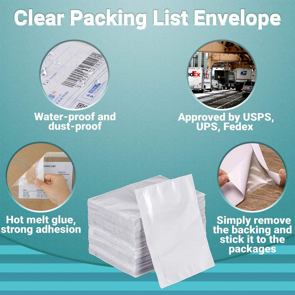 ซองพลาสติกใสขนาด7x5.5นิ้วบรรจุในซอง1000ถุงป้ายกำกับการขนส่งแบบซีลตัวเองทนทานสำหรับการส่งจดหมาย