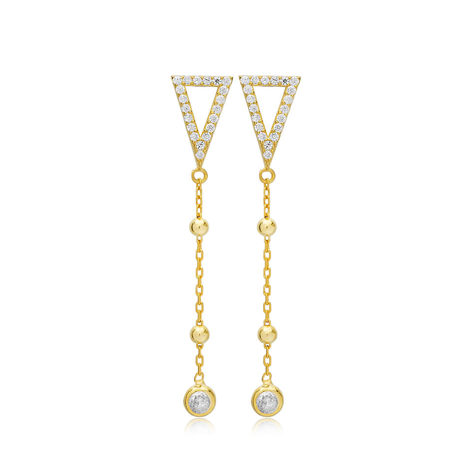 ต่างหูยาวหินเพทายใสทรงสามเหลี่ยมดีไซน์แบบตุรกีทำด้วยมือ925เครื่องประดับเงินสเตอร์ลิง