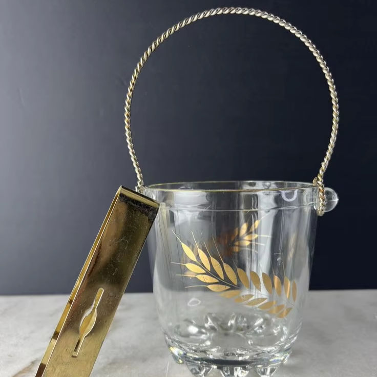 ถังน้ำแข็งทำจากแก้วพื้นผิวใสที่มีดีไซน์ทันสมัยและรูปทรงที่สมดุลสำหรับงานกิจกรรมในบ้านและงานเลี้ยงค็อกเทล